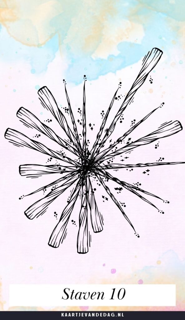 De Staven Tien symboliseert een zware last die je draagt. Misschien heb je te veel verantwoordelijkheden op je genomen en voel je je op dit moment overweldigd.